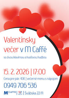 Valentínsky klavírny večer bude na Valentína v čase 17:00-19:00.